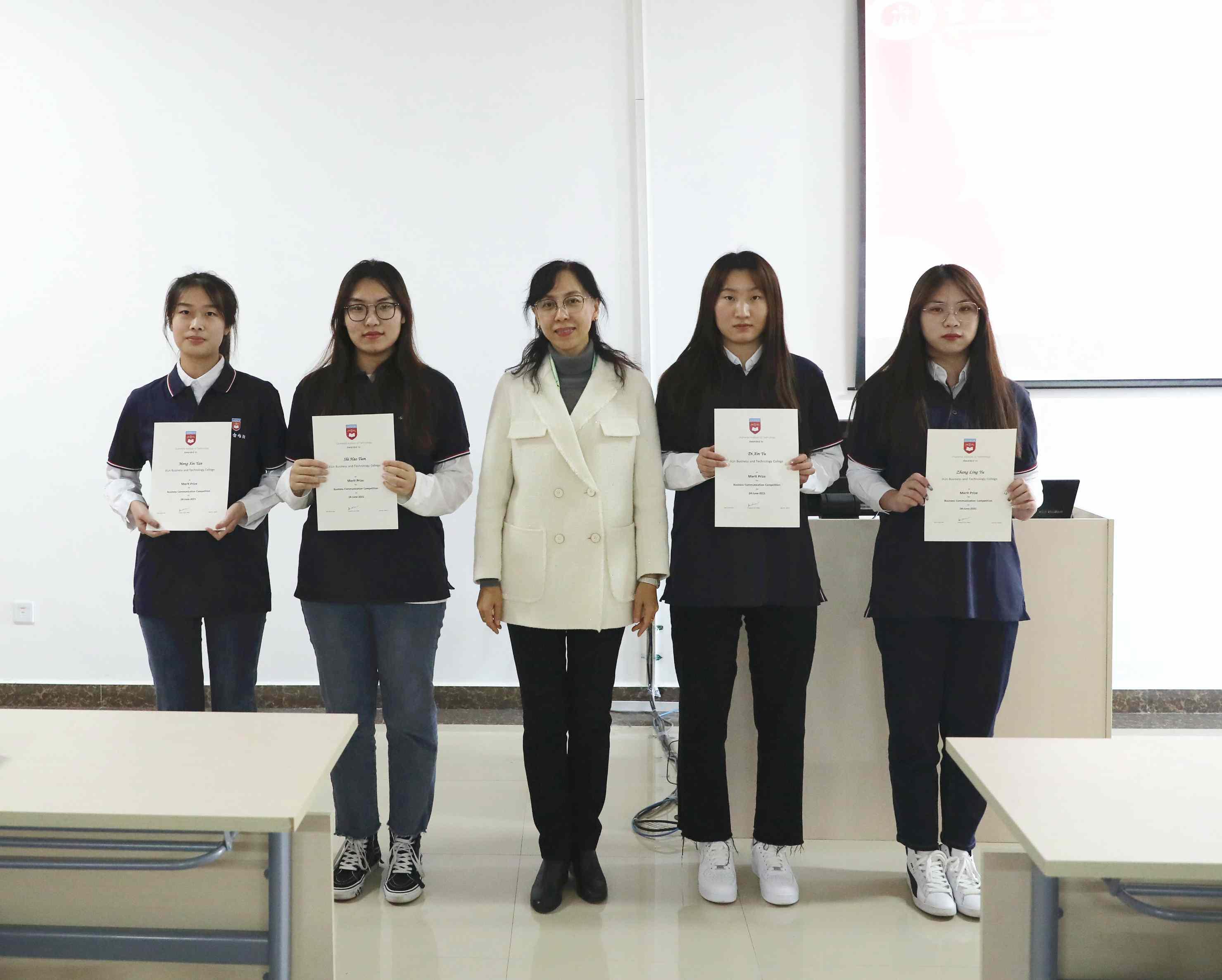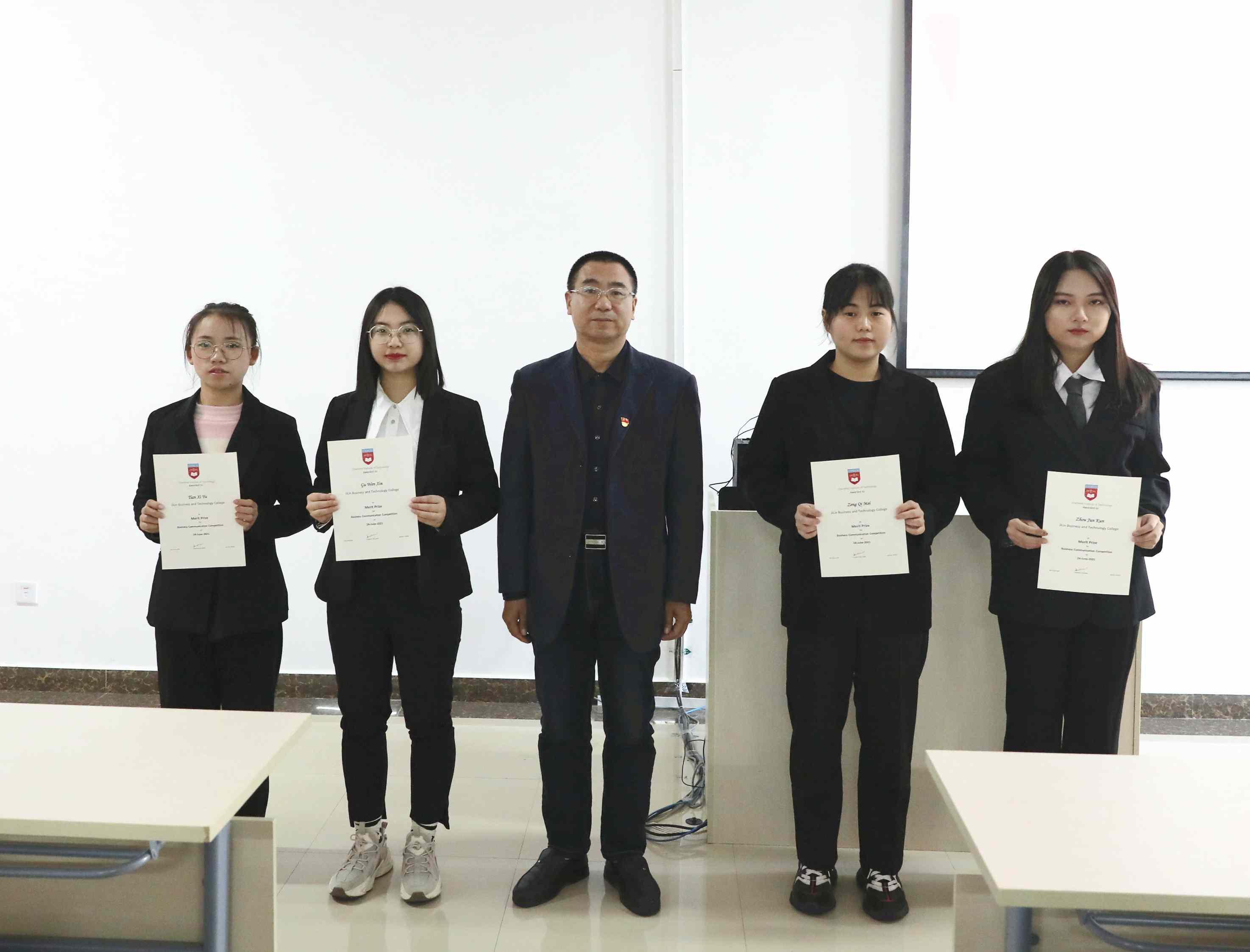 2021年6月,在由新加坡特许科技学院主办,吉林工商学院、上海杉达学院、南京审计大学金审学院共同参赛的《商务沟通比赛》中,我校组建了4支参赛队,共16名学生参加。其中会计学院本科学生组队2支,共8人;中外合作班组队2支,共8人。与去年相比,我校学生在参赛规模、人数和层次上都有明显提升。参赛选手围绕大赛主题,通过小组书面报告和用PPT口述报告的形式展示了自己的全英文表达和沟通中的应变能力。经过激烈角逐,我校学生取得了优异成绩,12名同学获得“商务沟通优秀证书”,4名同学获得“商务沟通最具有潜力证书”。
