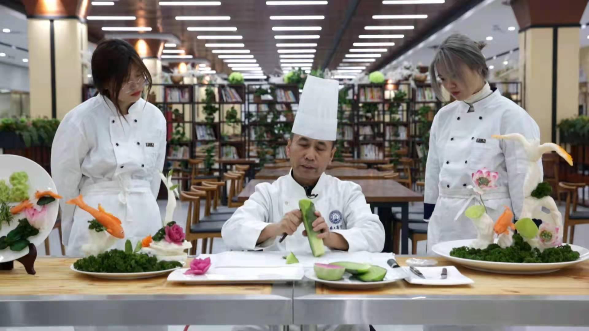 为使项目录制工作的顺利开展,我院高度重视,国际合作与交流处制定工作方案,刘晶处长全程陪同,旅游烹饪学院院长赵凌冰、副院长孙汉杰调度协调,并到录制现场进行指导。我院三位长白山技能名师分别进行了课程录制,展现了高水准的教学功底及高超的操作技艺。巩桂花老师教授了中华传统美食饺子的制作过程,从饺子的历史文化、制作工艺、质量标准等不同方面进行了详细讲解。夏金龙老师讲授了并现场制作了精品菜肴——飘香小排,在精细刀工和烹调场面中都充分体现了吉菜的烹饪技艺和文化内涵。朱基富老师的雕刻课程,用独到的创意与高超的技艺,让作品充分展现了中式烹饪的精髓。学生DIY调酒、茶艺表演,也充分展示出特色专业的建设水平。