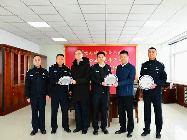 九台区副区长、长春市公安局九台区分局局长徐强,治安大队、政工处负责同志代表分局接受了致谢牌,之后双方进行了亲切友好的座谈交流。