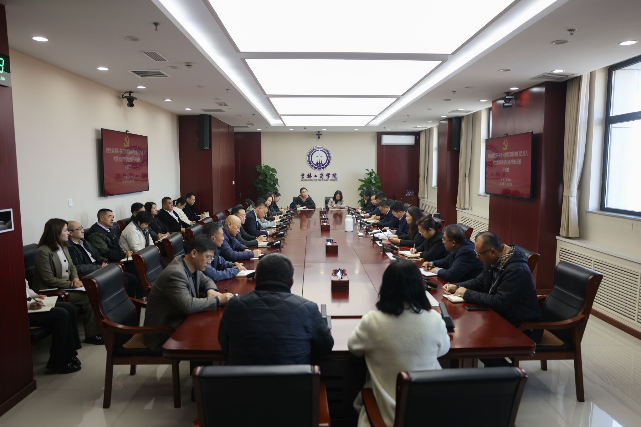 10月21日,吉林工商学院院级党组织书记和党委职能部门负责人党性修养与能力提升培训班开班式在综合办公楼702会议室召开。党委书记张吉锋同志出席并作题为《走在不断提升党性修养和业务能力的第一方阵》的专题党课。党课围绕党性修养的深化与业务能力的提升,进行了系统阐述和全面指导。