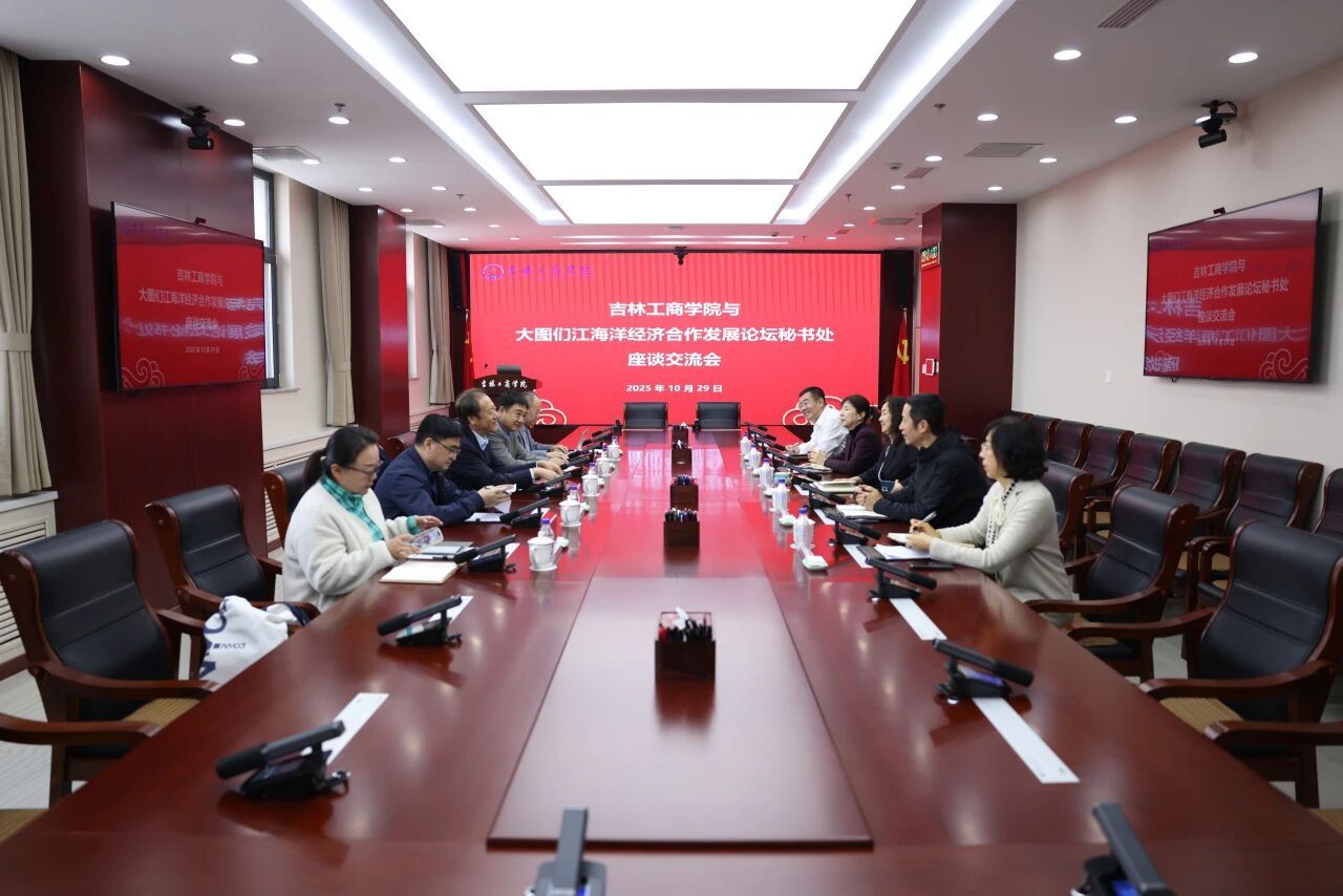 董本云代表学校对崔军一行的到访表示欢迎。她指出,大图们江海洋经济合作发展论坛作为服务东北亚区域合作的重要平台,与我校助力吉林全面振兴、打造区域协作枢纽的发展方向高度契合。此次座谈既是双方深化沟通的起点,更为后续长效合作搭建了桥梁。希望双方在智库平台搭建、中外合作办学等领域建立长效合作机制,切实将我校的专业资源优势转化为服务东北亚区域合作的实践力量。