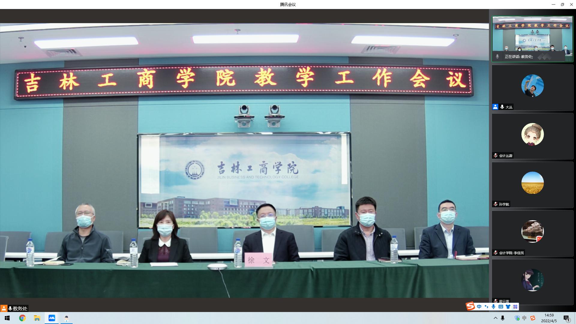 宋学红首先介绍了自3月7日以来学校开展线上教学工作的总体情况。一是教务处对教学单位开展了全范围听巡课,建立了听巡课日汇总和周报告制度。总体来看,任课教师能够积极采用多种形式开展线上教学,及时加入课前防疫教育、对学生的人文关怀和心理疏导等内容,有效地融入课程思政,较好地完成了线上授课任务。学校党委书记和校长高度重视线上教学,分别进行了线上听巡课,对教师们的授课效果给予了充分肯定和赞扬鼓励。二是线上教学还存在着学生上课“挂屏现象”,个别教师仪容仪表和着装规范性不够、授课只有音频没有出镜、抗疫知识讲解时间过长等问题。她强调,下一阶段继续强化线上教学检查,确保线上教学质量。其次对学校2022级人才培养方案编制和省级一流专业互查工作做了部署和安排。