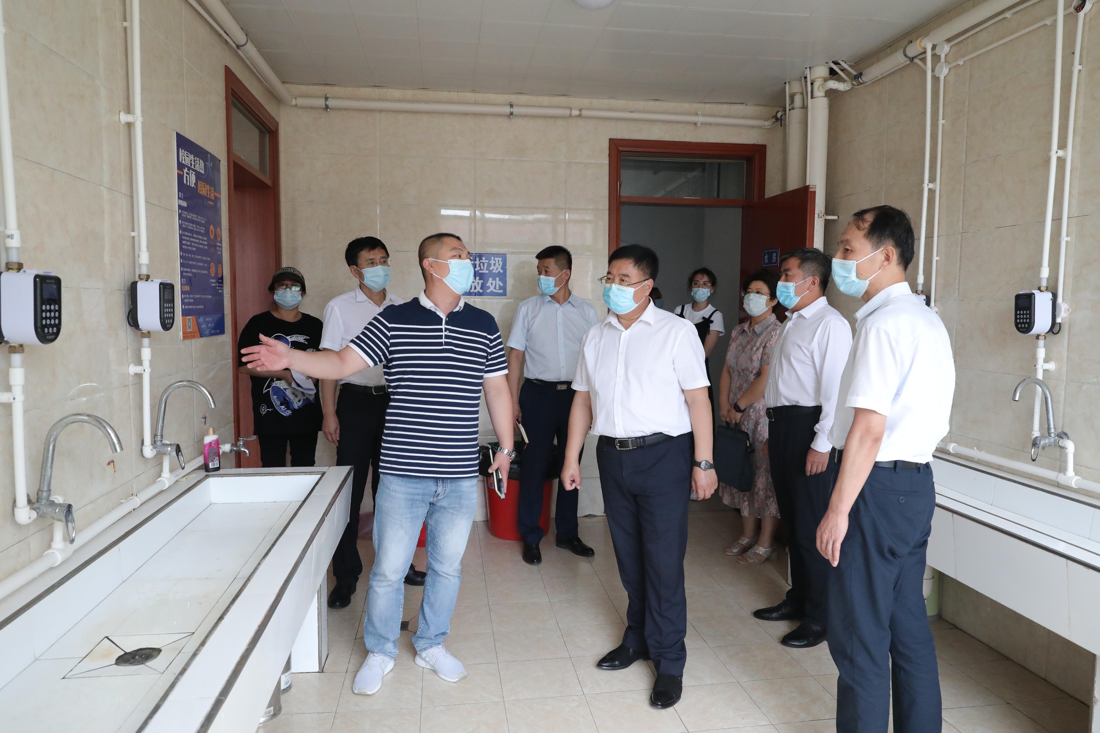 最后,关忠诚一行来到学生第7公寓,相关工作人员汇报了学生公寓隔离区改造的整体情况。关忠诚对学校疫情防控工作,特别是秋季学期开学准备工作给予充分肯定,他指出,希望学校进一步压实防控责任,落实落细各项防控措施,确保开学期间校园安全稳定。