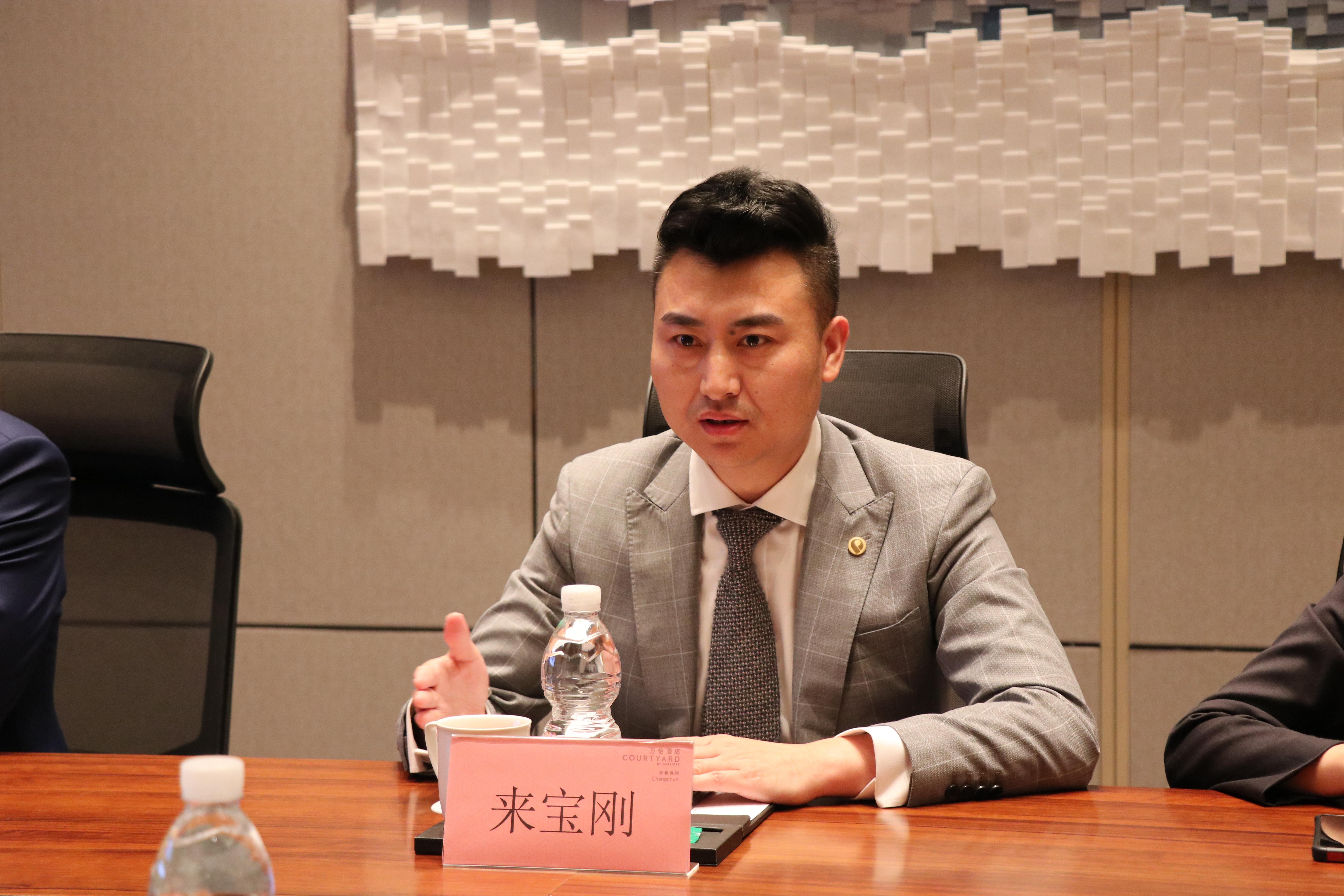 来宝刚对母校领导老师的莅临表示热烈欢迎,能够以企业负责人和校友的双重身份,迎接母校领导老师的到来,他倍感荣耀和自豪。来宝刚详细介绍了酒店的发展历程、运营管理及服务特色。长春保利万怡酒店是万豪国际集团携手保利商旅共同打造的长春首家万怡品牌酒店,坐落于长春汽车经济技术开发区核心地带。他表示,能够从学生逐渐成长为一名高级职业经理人,要感谢母校的培养,更要永远铭记师生情谊。他希望以此次活动为契机,将自己的成长奋斗经验,传递给师弟师妹,回馈母校,也期待和学校能够深化合作对接,共创美好未来。