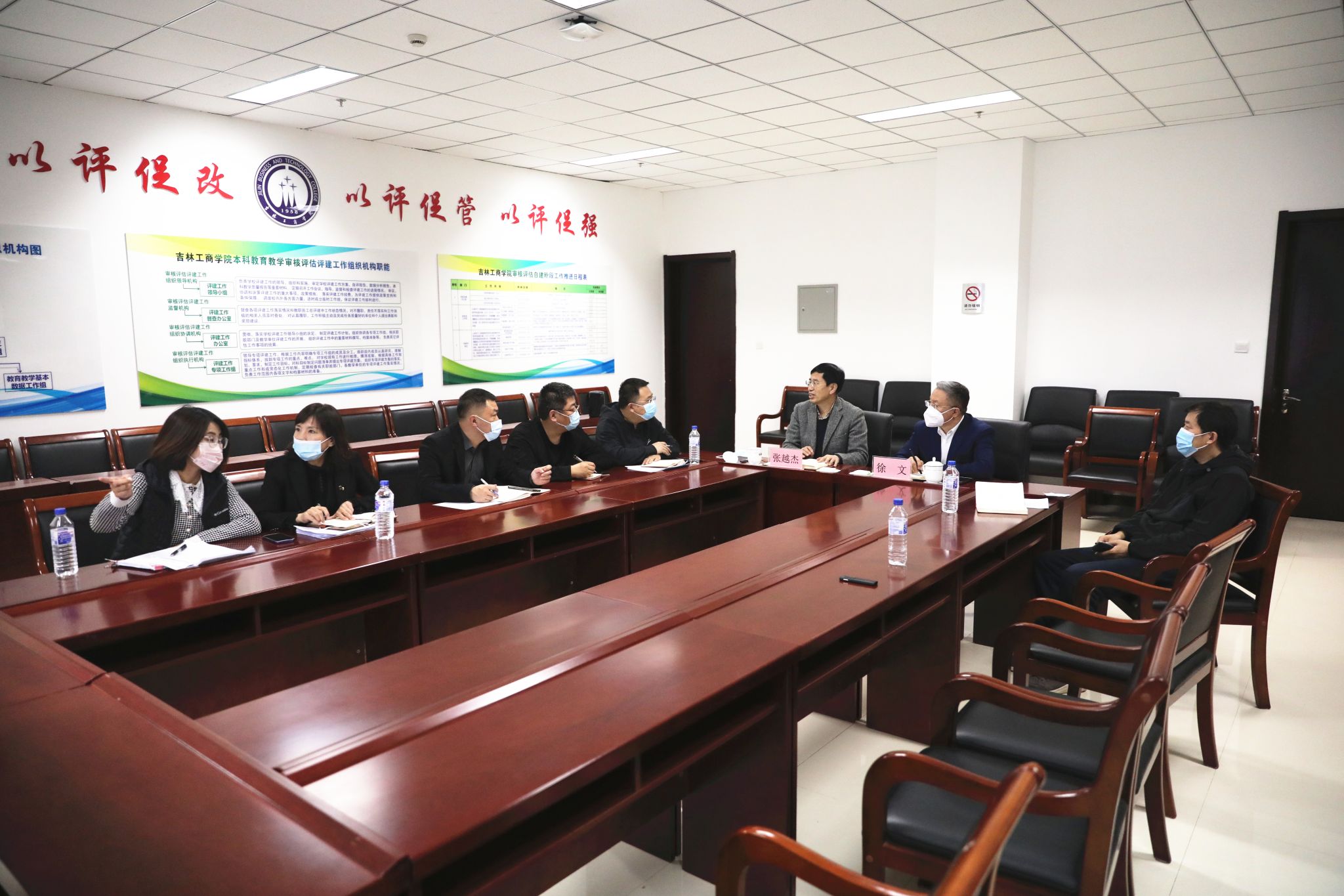 为进一步推进我校审核评估评建工作,准确掌握各专项工作组工作进展情况,确保审核评估评建工作落实到位,12月5日,学校审核评估评建工作办公室在综合办公楼325会议室召开了评估评建专项工作组工作汇报会。校长张越杰出席会议,副校长徐文主持会议。