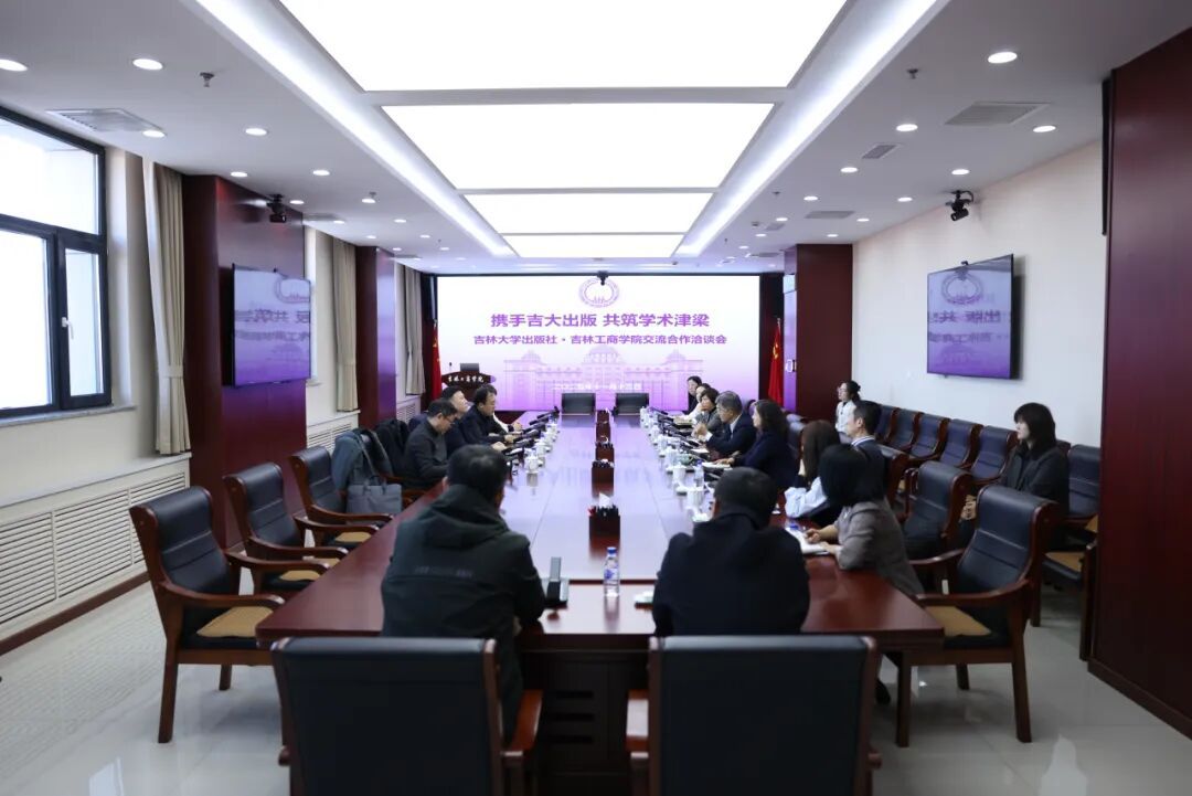 为深化校社协同育人机制,推动教育教学资源与出版传播优势深度融合,进一步提升教育教学质量与学术成果转化效能,11月13日,学校在综合办公楼702会议室举办“吉林大学出版社·吉林工商学院交流合作洽谈会”。党委副书记、校长李宝永,副校长董本云出席会议。教务处、科研处以及6个教学单位负责人参加座谈。吉林大学出版社党委书记、董事长迟宪良,社长金江红,总编辑李荣茂,总编辑主任徐佳出席会议。双方围绕教材建设、学术专著出版等核心议题深入交流,共商校社合作新路径。座谈会由教务处处长宋学红主持。
