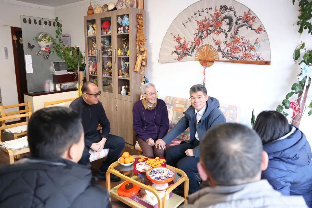 党委副书记、校长李宝永来到离休老同志苗长瑞和退休老同志唐文家中,向他们致以诚挚的节日问候。李宝永感谢老同志们始终心系学校,用智慧和奉献陪伴并推动了学校的成长。交谈中,校领导与老同志们一同追忆奋斗岁月,畅谈发展变化,屋内欢声笑语,温情洋溢。
