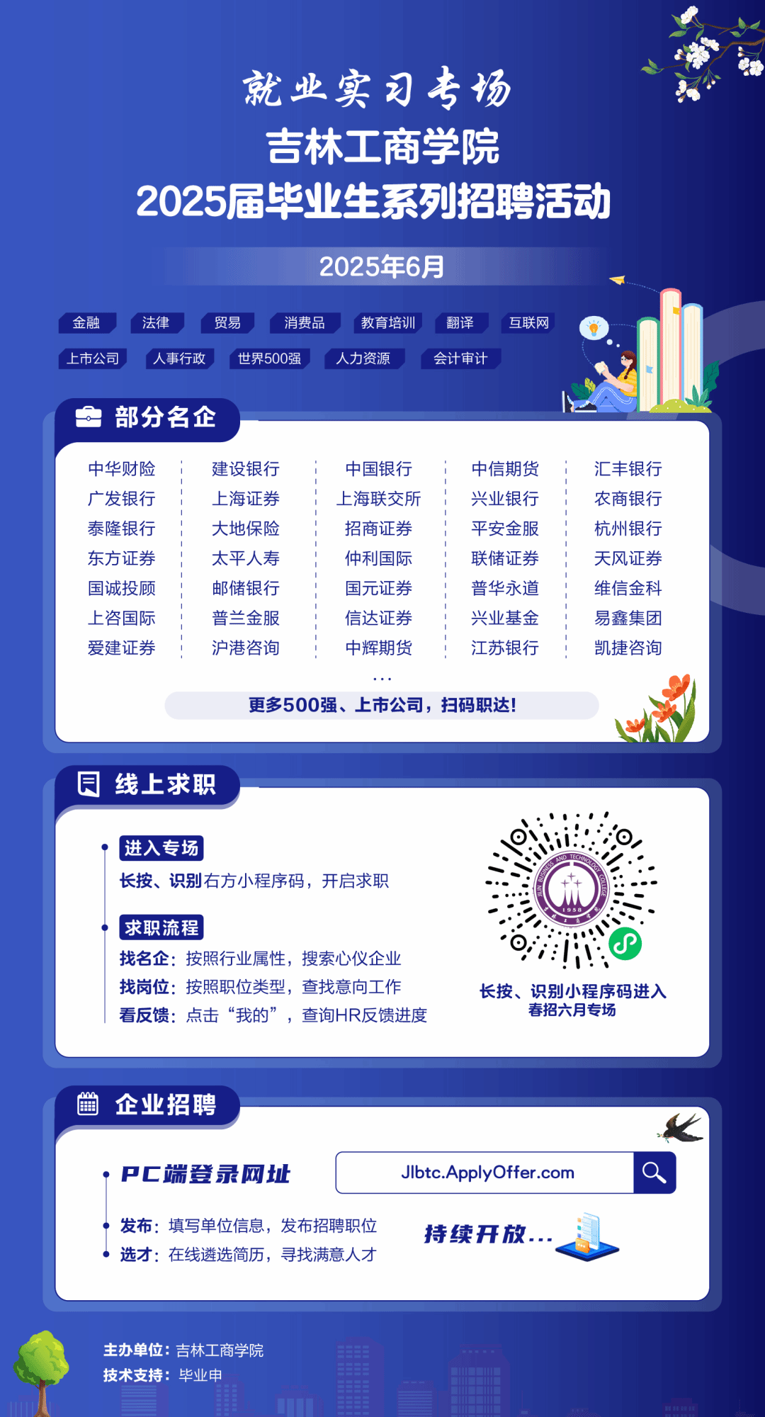 就业实习专场 | 吉林工商学院2025届毕业生系列招聘活动(第15场)