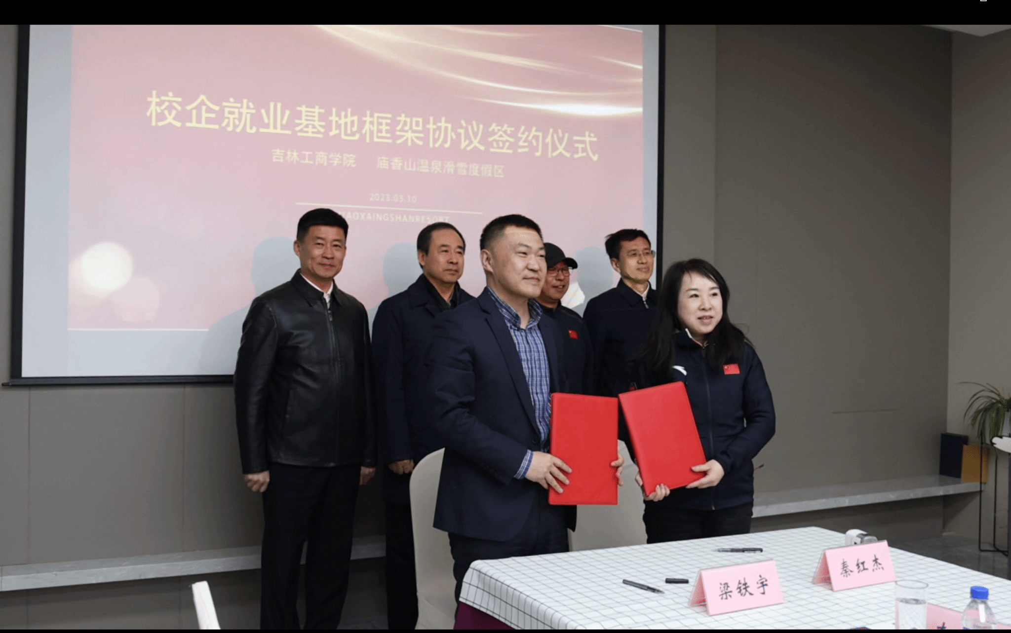 长春大学、长春大学旅游学院就本学校教育教学、人才培养和校企合作等内容作了介绍。我校及其他两所学校分别与庙香山温泉滑雪度假区签订就业基地框架协议。