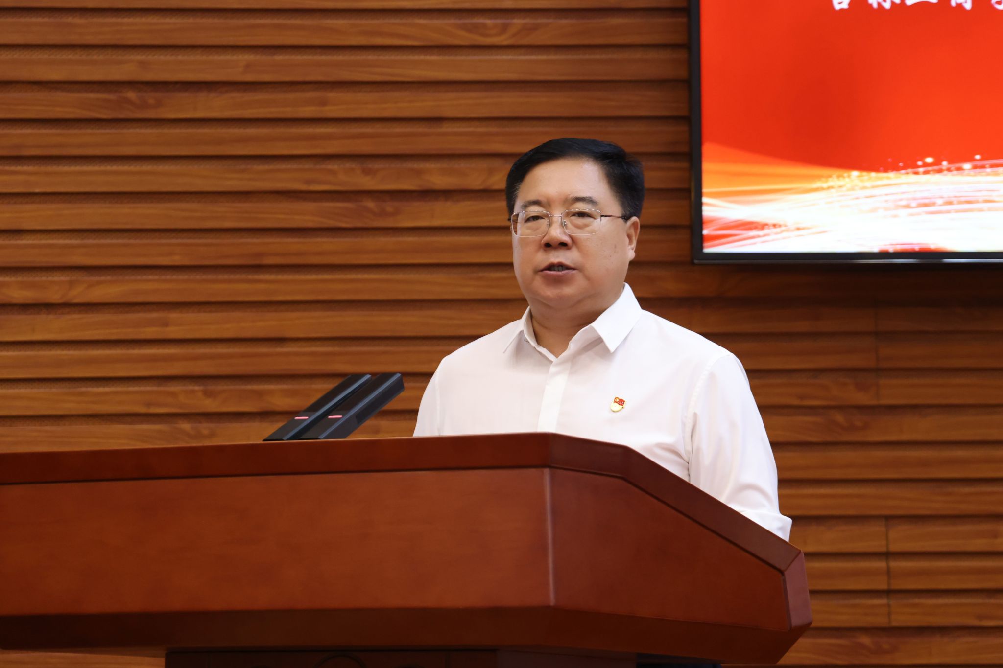 大会在庄严的国歌声中拉开帷幕。与会人员观看了先进典型宣传视频。