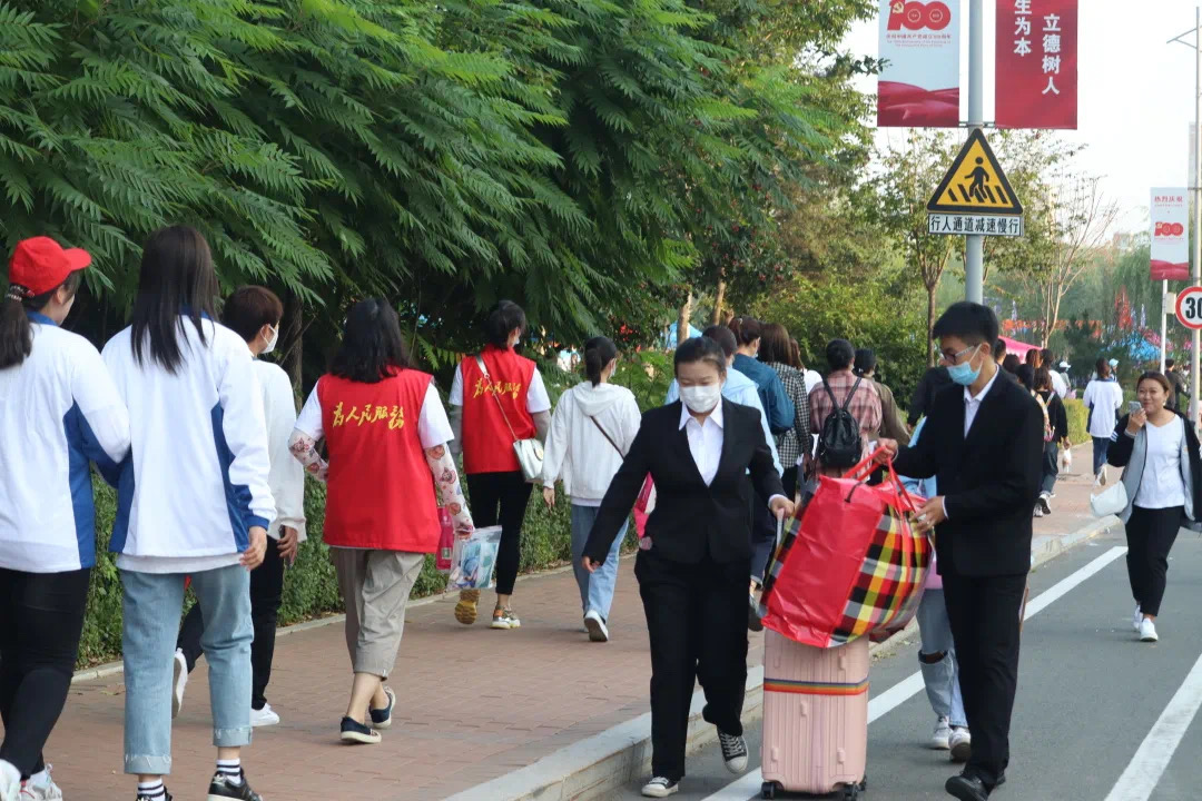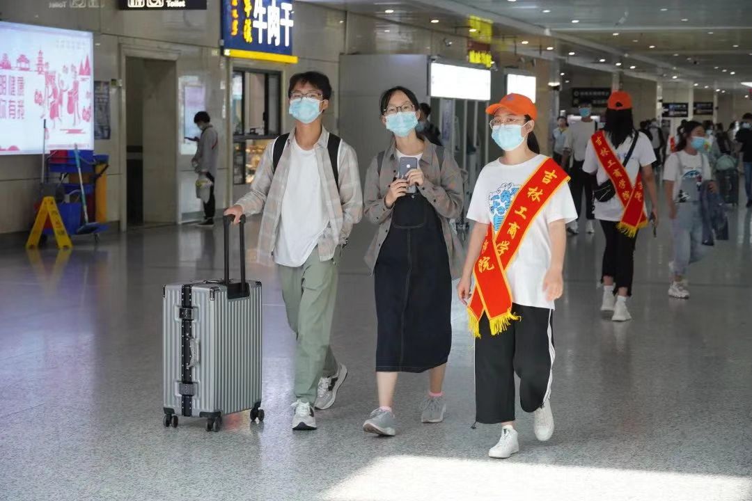 为了方便同学们安全便捷地抵达校园,学校在长春火车站设立了接站点,迎新当天清晨,志愿者们就早早地等候在了火车站的志愿服务点,翘首期盼第一批新生的到来。一批批到达的同学们从火车站统一乘坐校车,安全抵达学校。在进入校园前,新生需要经过测量体温,消毒,出示核酸检测报告,查看健康码、行程码等环节,才能进入校园,保障了大家的健康和安全。
