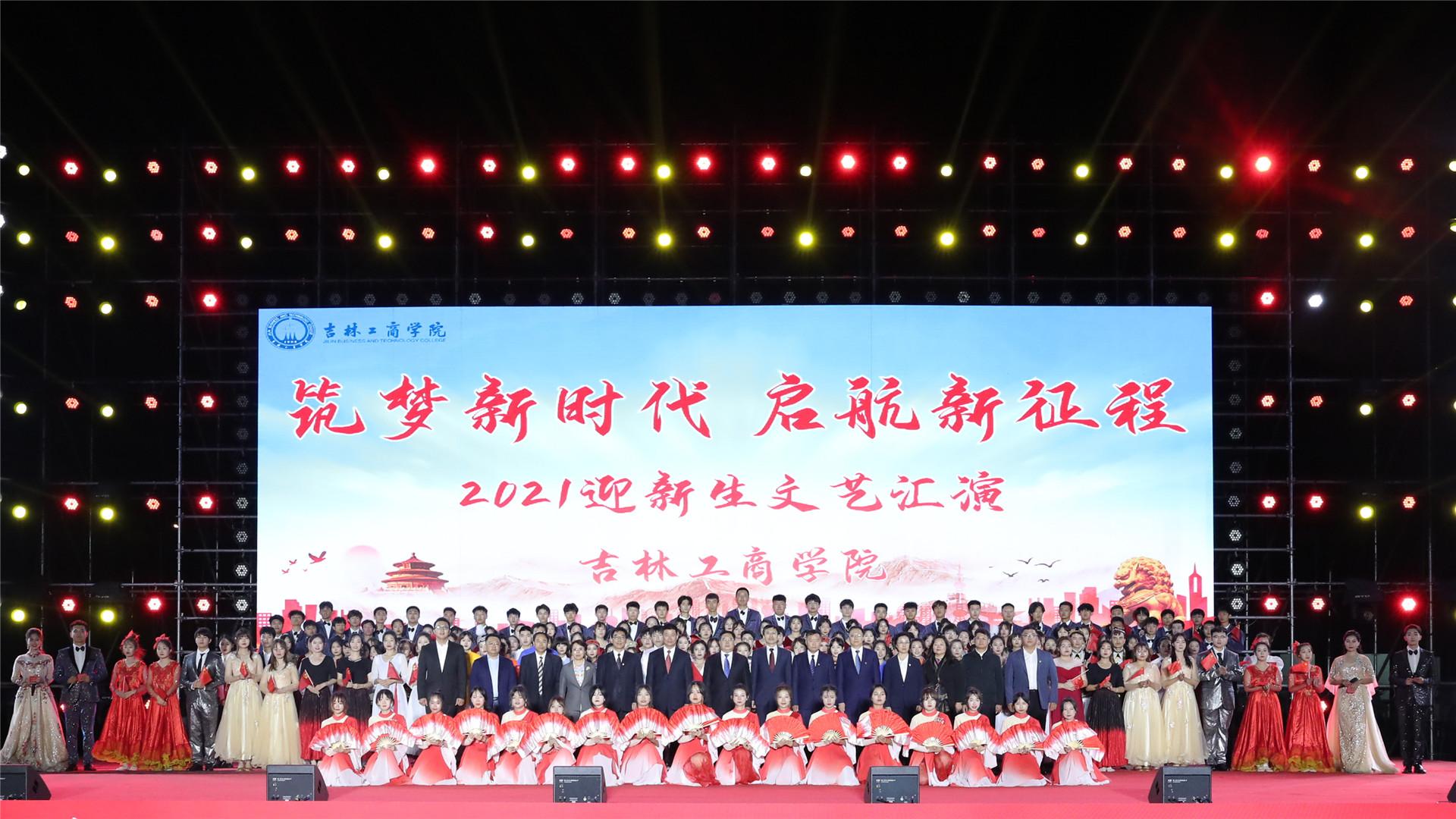 尽展艺术魅力,共享视听盛宴。9月28日17点20分,吉林工商学院庆祝中华人民共和国成立72周年“筑梦新时代启航新征程”2021迎新生文艺汇演在第一运动场隆重举行。党委书记张炳辉,党委副书记、院长张越杰,党委副书记杜希刚,副院长刘君义、迟柏龙、徐文、张熙奀,党委常委韩华英、刘长顺出席活动。党委各职能部门、行政及教辅部门负责人,各教学单位主要负责人,教师代表和学生代表参加了活动。全体2021级新生在现场观看了演出,全校师生、家长、校友和社会各界人士通过腾讯微赞、新浪微博观看了直播,学校官微、官博也同步进行了直播,网络在线观看量超过190万次。