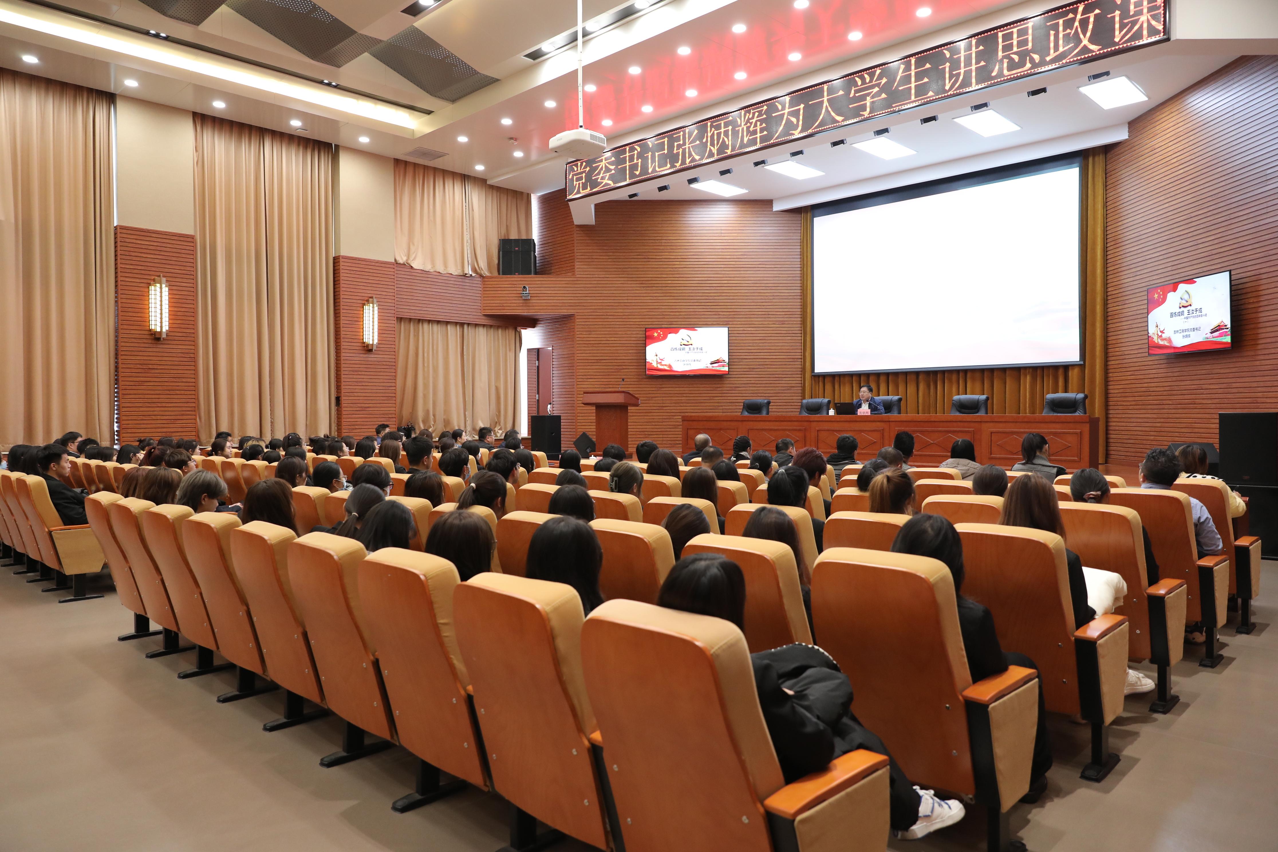 11月10日下午,党委书记张炳辉以《百炼成钢玉汝于成——中国共产党的百年奋斗史(一)》为题,在第二教学楼429报告厅,为我校大学生讲授了一堂生动精彩的思政课。全校优秀团员青年骨干、学生会干部代表等200余名学生在现场聆听了思政课。马克思主义学院党总支书记王长平、院长韩杰,团委书记由广全,党委宣传部副部长陈智以及各教学学院党委副书记、学团办主任,马克思主义学院教师代表等参加了思政课。思政课由韩杰主持。