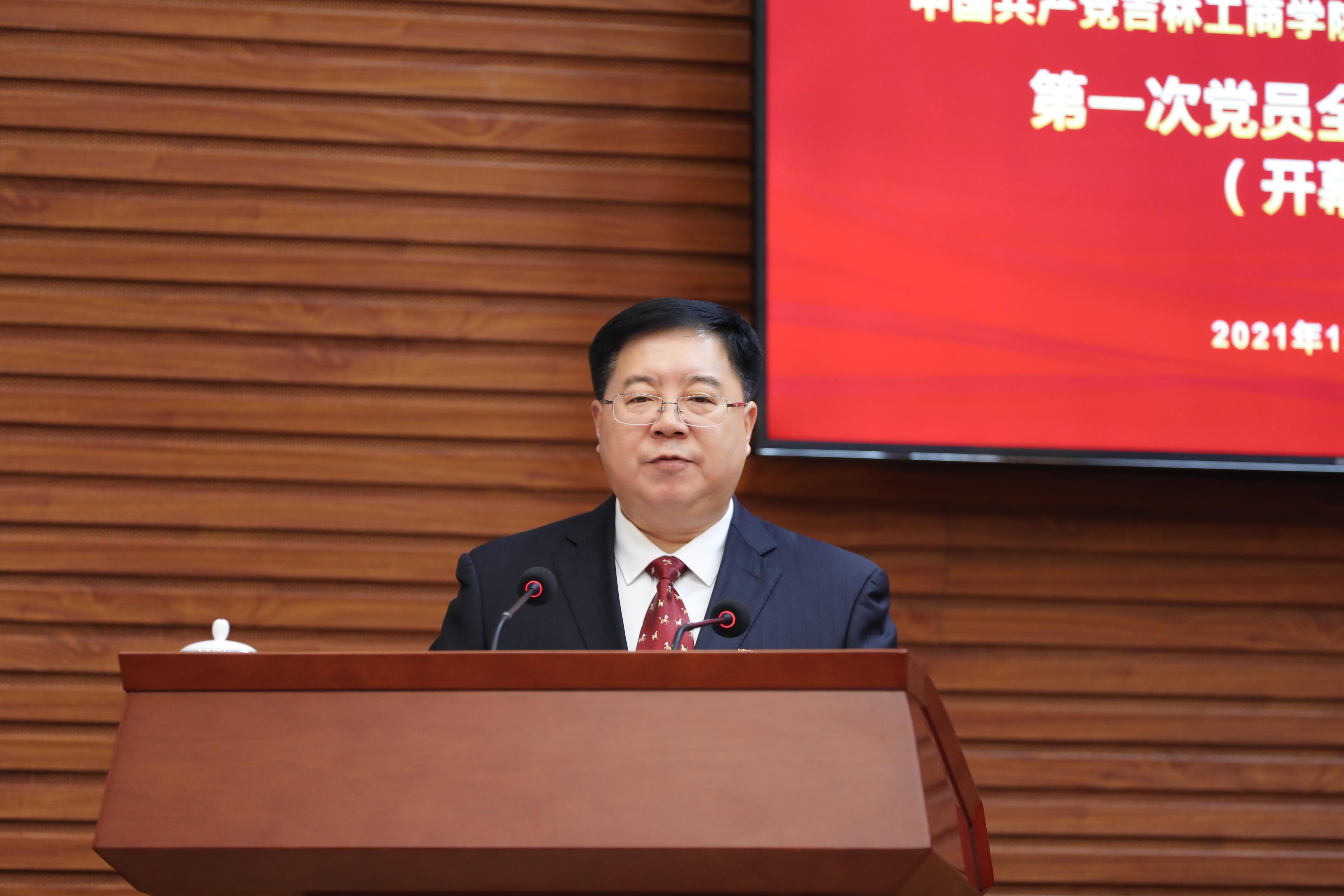 大会号召:全校师生更加紧密地团结在以习近平同志为核心的党中央周围,全面贯彻习近平新时代中国特色社会主义思想,增强“四个意识”、坚定“四个自信”、 坚决拥护“两个确立”、坚决做到“两个维护”,弘扬伟大建党精神,传承百年奋斗经验,勿忘昨天的苦难辉煌,无愧今天的使命担当,不负明天的伟大梦想,不忘初心,牢记使命,真抓实干,久久为功,全方位推动高质量发展,加快建成国内知名、省内一流的特色高水平应用型大学,以优异成绩迎接党的二十大胜利召开,为推动新时代吉林全面振兴全方位振兴贡献力量,为夺取新时代中国特色社会主义伟大胜利,实现中华民族伟大复兴而不懈奋斗!